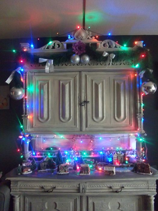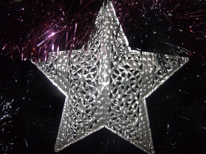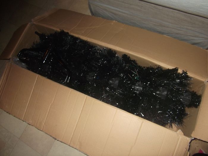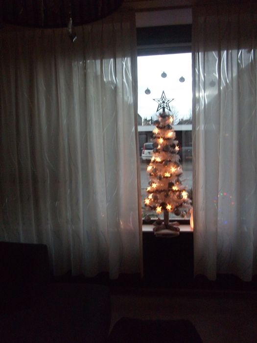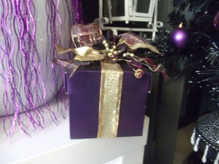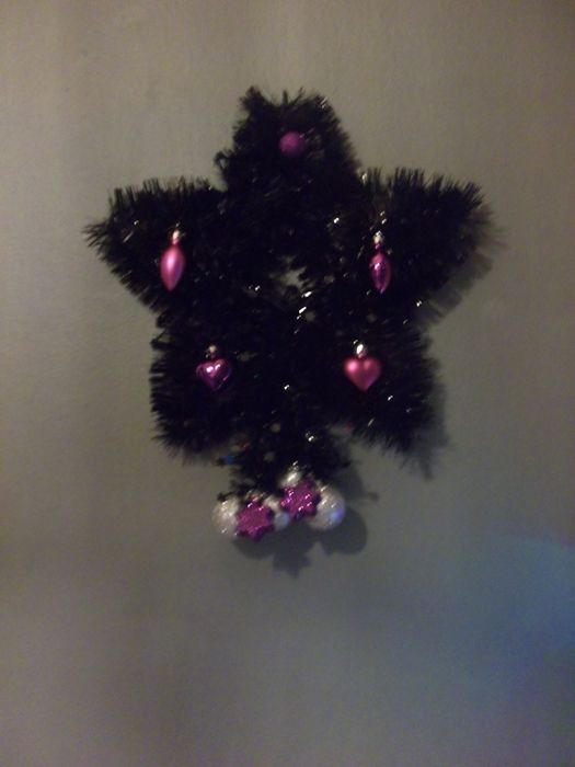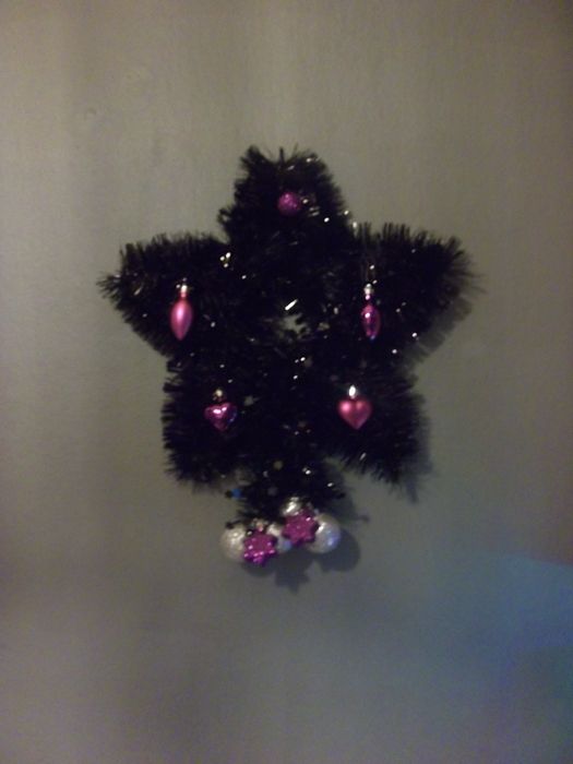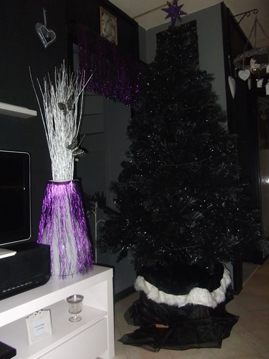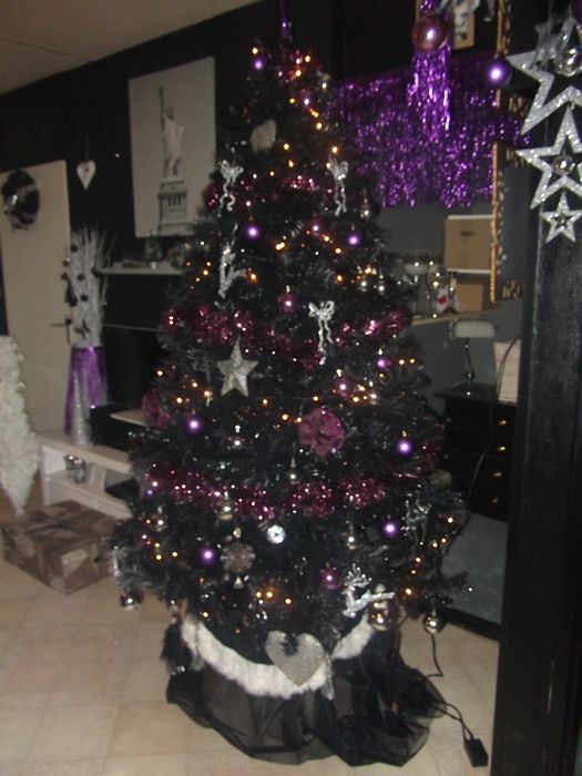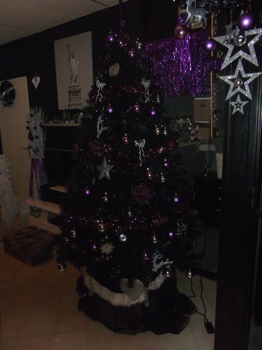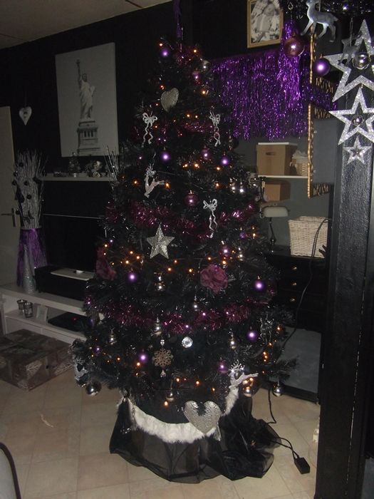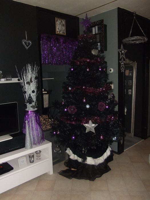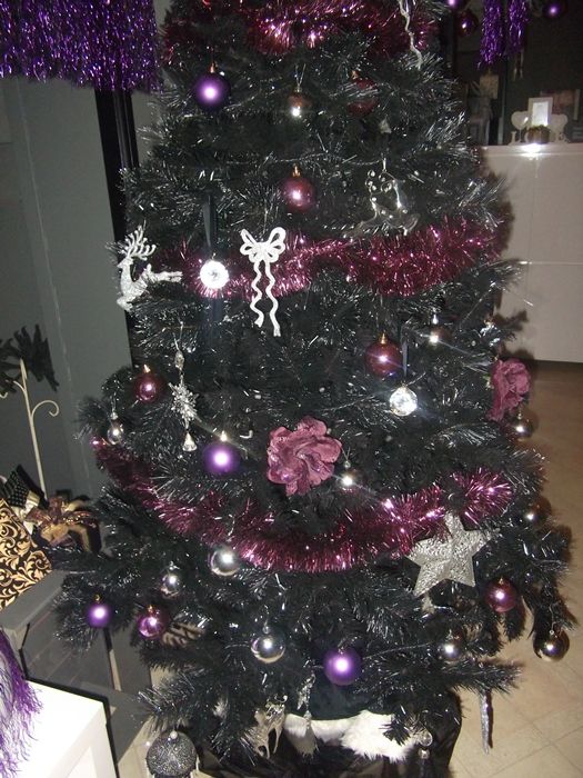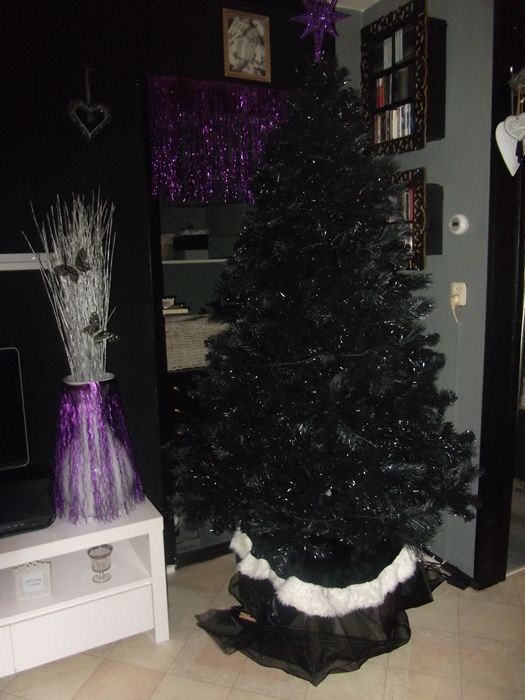 Ik heb al wat mooie donkerpaarse versieringen gehaald en de zwarte kerstboom heb ik gehad van een vriendin van me.